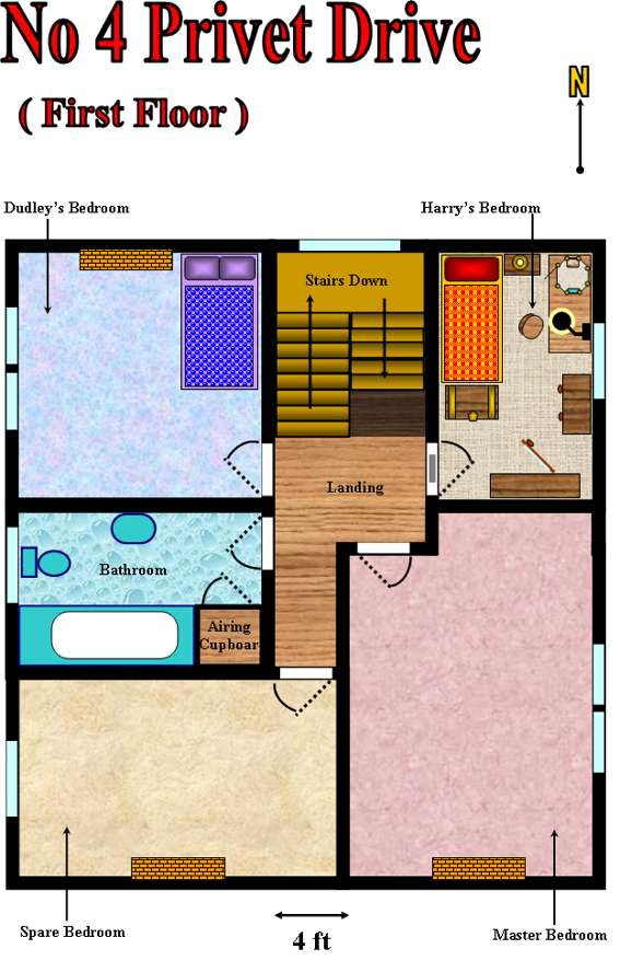 Privet Drive is a street located in Little Whinging, Surrey. It's a quiet, neat place, quite different from the magic destinations we'll be presented later on. According to Tonks (OotP), the whole place is so clean it's unnatural. The number 4 is the Dursleys' residence, where Harry lives for sixteen years (from November 1st, 1981 to July 30th, 1997). Despite the fact that it's a big house with four bedrooms, Harry sleeps in a cupboard until he's eleven. From the time he starts attending Hogwarts, Harry spends only a portion of the summer there each year, since he invariably ends up somewhere else for the rest of the holidays.The name of the street comes from a suburban plant, referencing the inclosed nature of the Dursleys' suburban life, while 'Little Whinging' makes reference to a person who whines too much. Number 4 is Rowling's least favourite number, which is why she chose it for the Dursleys. (In some cultures, 4 is considered unlucky, similarly to the number 13 in Western culture.)